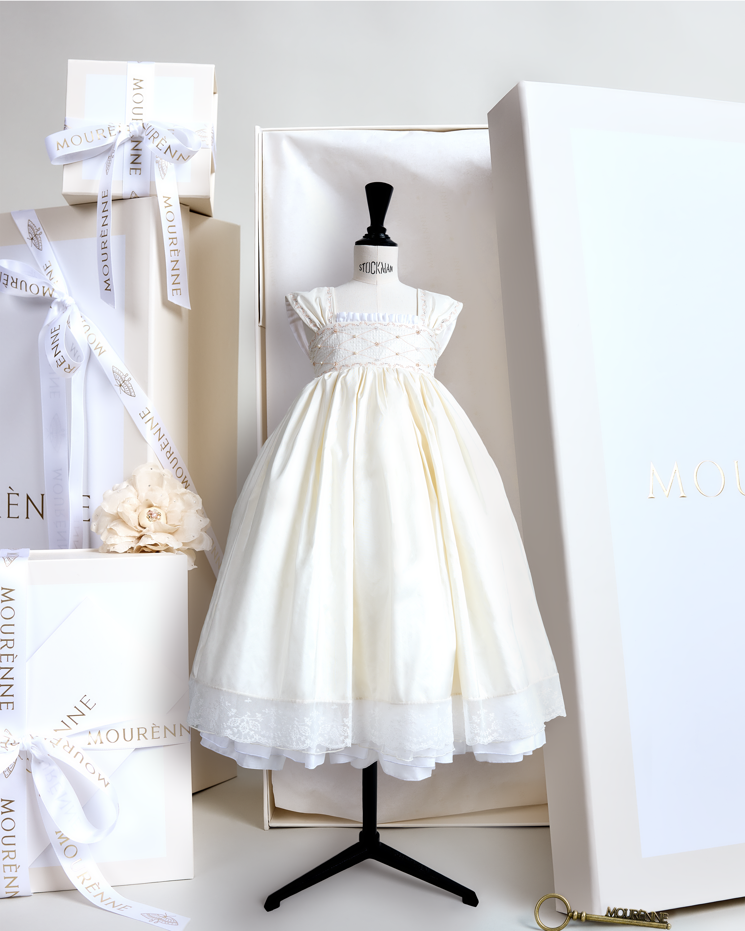 Every Mourènne creation arrives in its own luxury box. Just like our fabrics, our packaging is 100% biodegradable and sustainably sourced. Every detail is thoughtfully designed and adds a magical touch, inviting you to embark on a wondrous adventure from the moment you unwrap it.